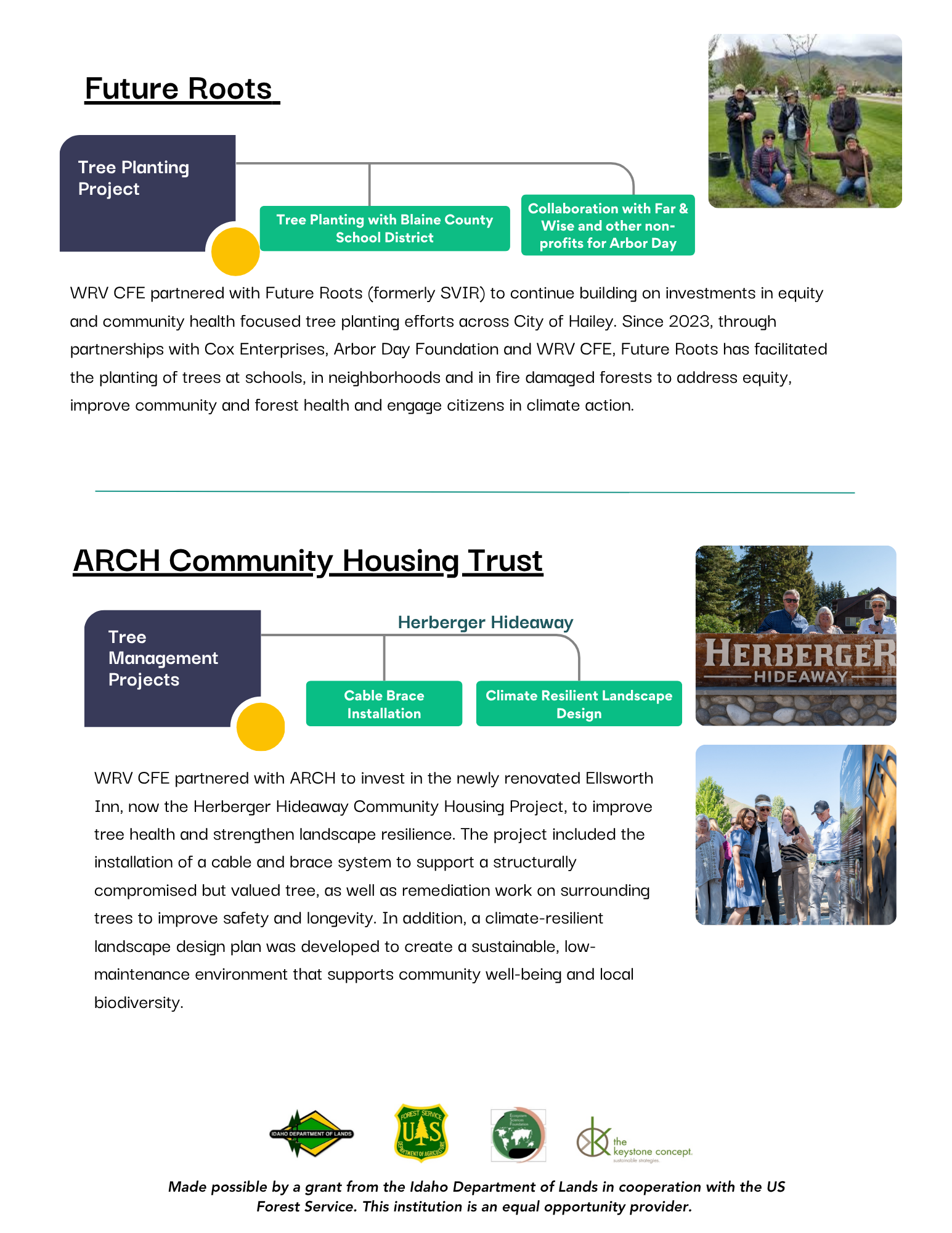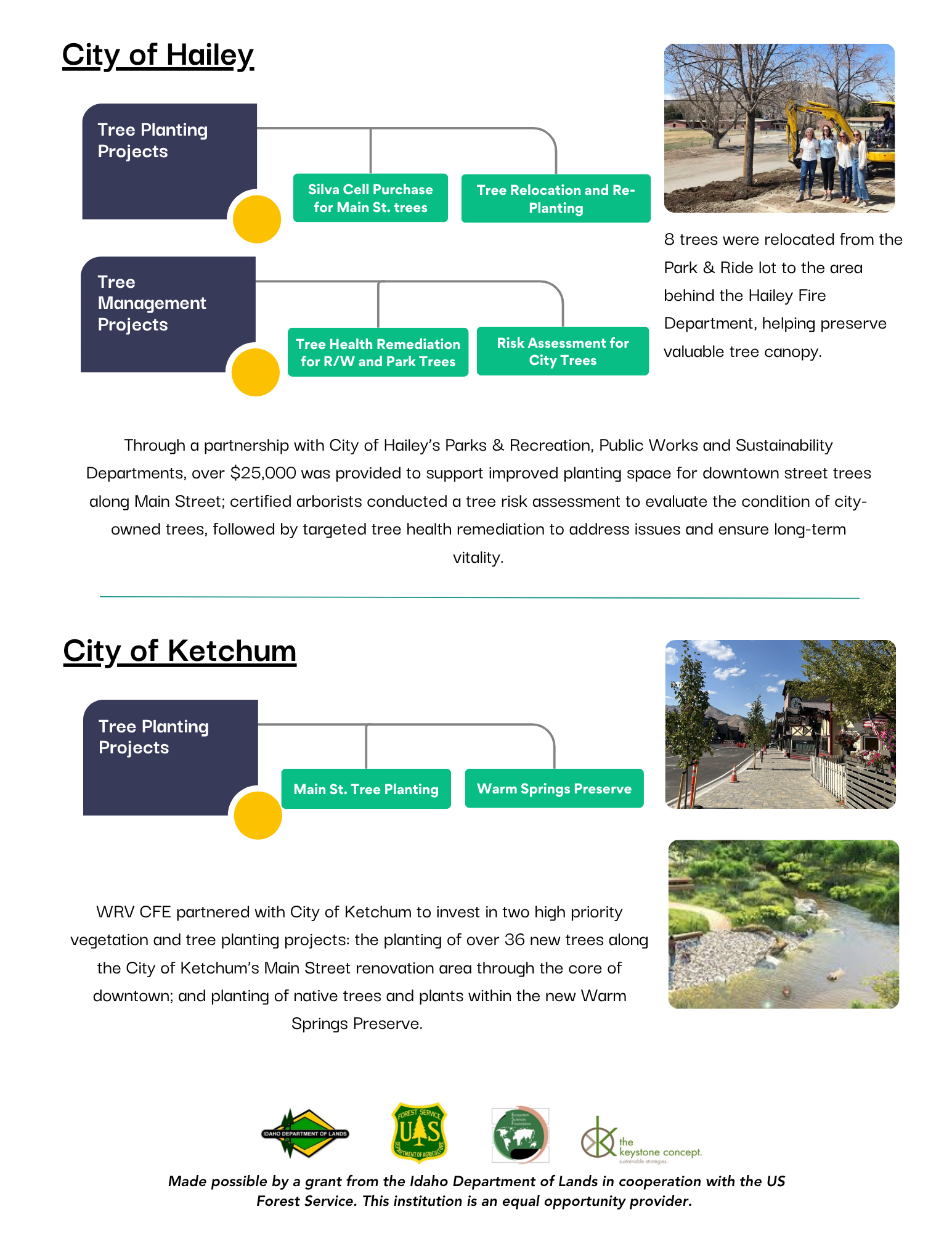 Tree Planting: Hailey Tree Committee, Sun Valley Institute for Resilience, City of Ketchum, Wood River Land Trust, City of Hailey, ARCH Community Land Trust